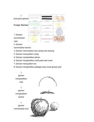 Check more flip ebooks related to Pendidikan Seni Visual Tingkatan 4 KSSM of Teacher Zainab ART. Contoh-contoh Garisan Garisan merupakan unsur seni yang paling asas. Cetakan tingkatan 4 dan 5.